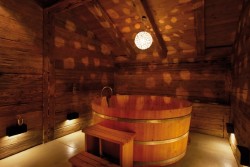 «Im Bademantel gehst du vom Zimmer über den Dorfplatz zum wunderschönen Stall. Starte mit der Blockhaussauna, tauche ein in die kühle Bergluft und entspanne dich danach im Molkebad im Holzzuber auf der Blumenwiese. In der Heubühne mit freier Sicht über den murmelnden Dorfbrunnen ins Tal, ergeben sich deine letzte Verspannung beim Massieren.»